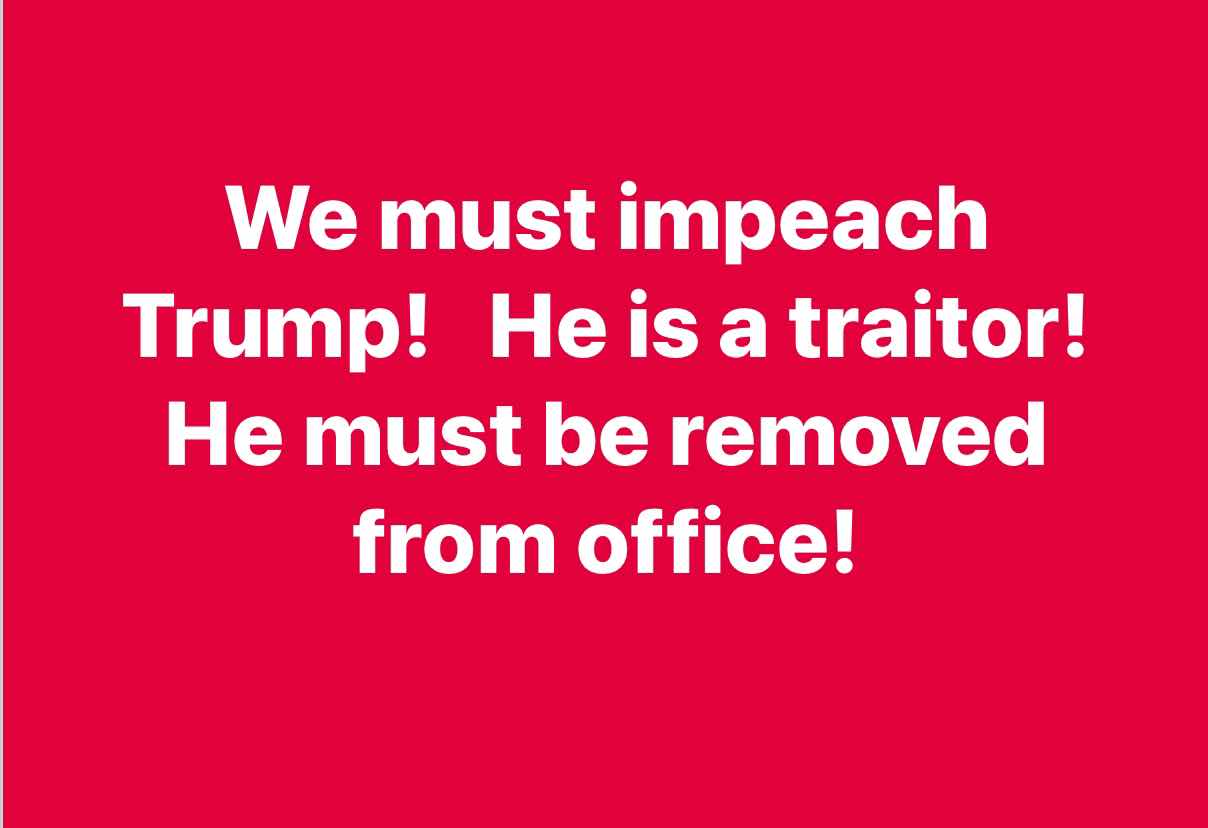 We must impeach Trump! He is a traitor! He must be removed from office.